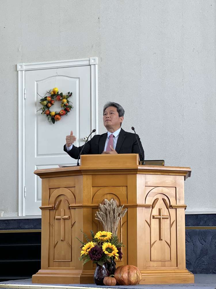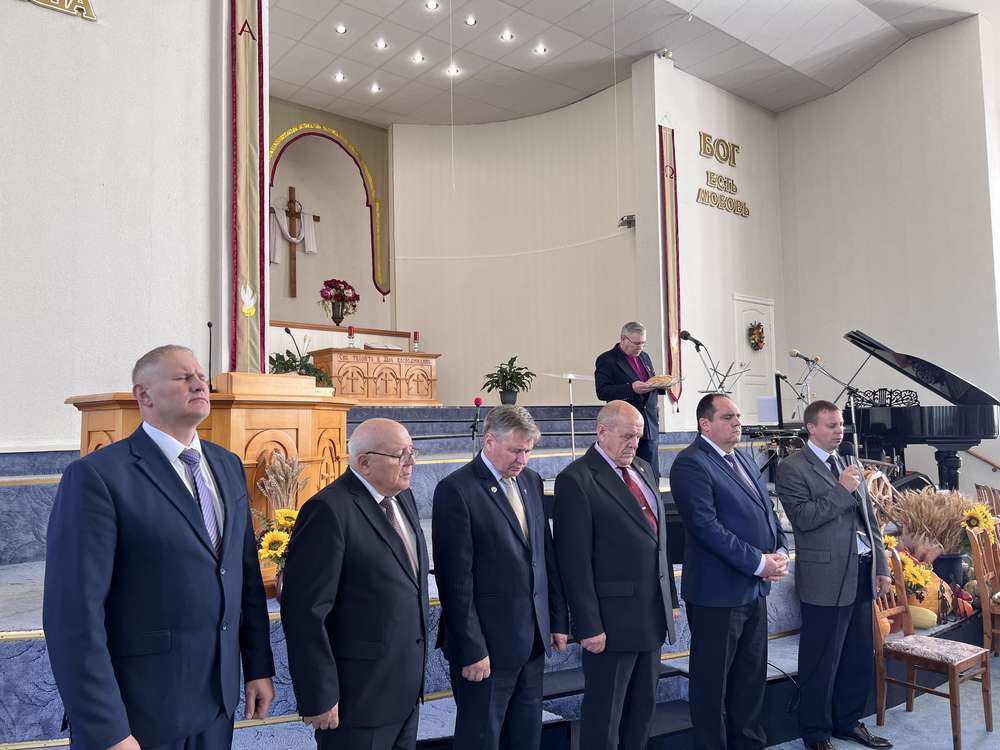По обыкновению, праздничное служение возглавил епископ А. И. Корабель. Он прочитал стихи из книги Бытие (Быт. 8: 22): «Впредь во все дни земли сеяние и жатва, холод и зной, лето и зима, день и ночь не прекратятся». И из книги Откровение (Откр. 14: 15): «И вышел другой Ангел из храма и воскликнул громким голосом к сидящему на облаке: Пусти серп твой и пожни, потому что пришло время жатвы, ибо жатва на земле созрела». Начало жатвы физической и окончание жатвы духовной — жатвы всего человечества. Епископ не только рассказал о Жатве, но и показал тем, кто не знает, самый первый инструмент (серп), которым жали первые люди на земле.
