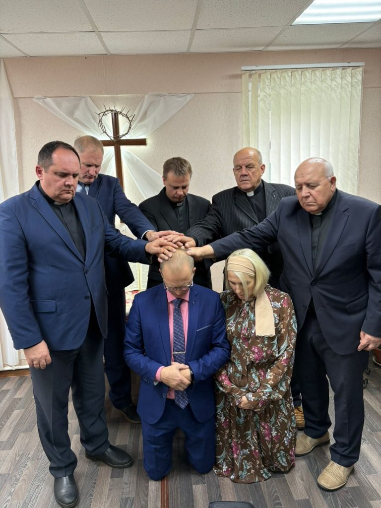 После общей молитвы была совершена хиротония (рукоположение). Священнодействие совершили: старший пресвитер И. А. Корабель, пресвитер Н. И. Алексеев и пресвитер А. С. Шаблинский. В заключение все присутствующие поздравили Александра Валерьевича и пожелали ему Божьих благословений в служении, в новом статусе на ниве Божьей.
